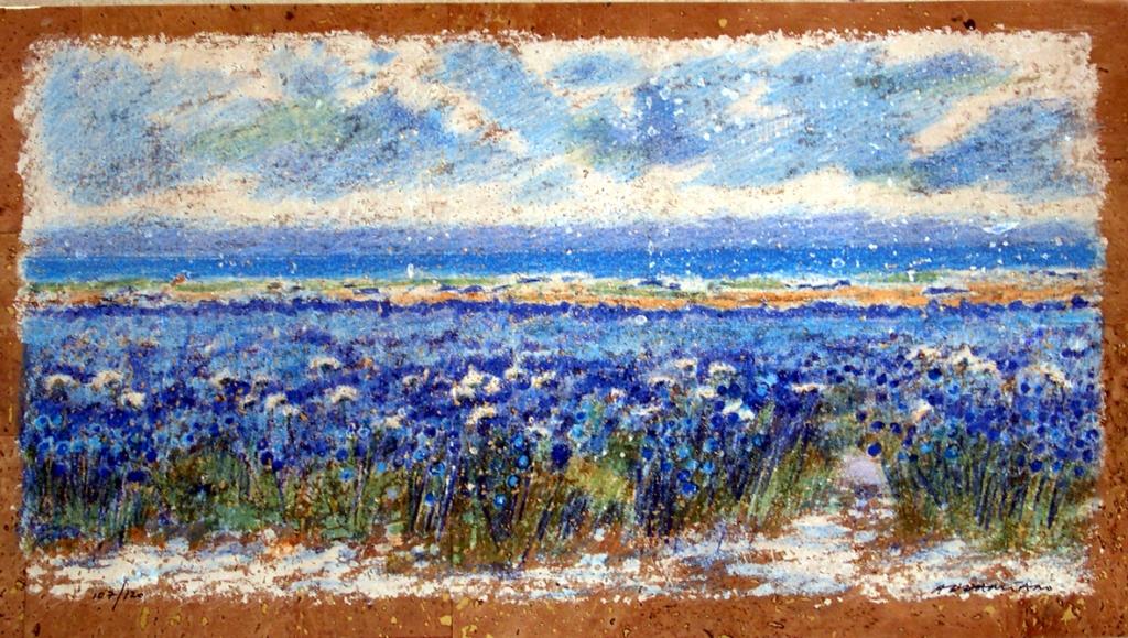 litografia originale + passaggio in serigrafia per il colore bianco formato carta 22,5x37 cm
